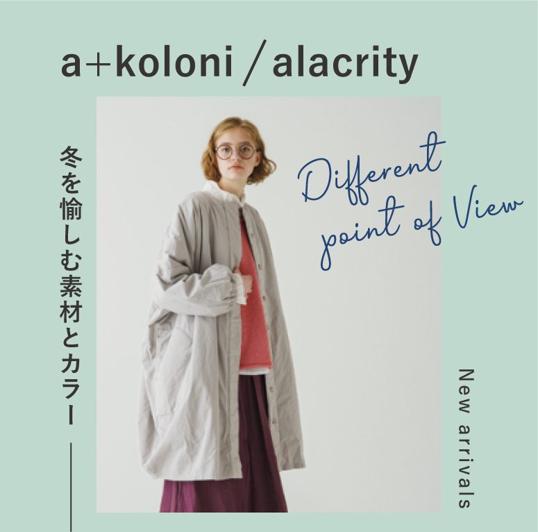 【※この記事は過去の記事です】 新作が続々入荷!a+koloni/alacrityの秋冬コレクション