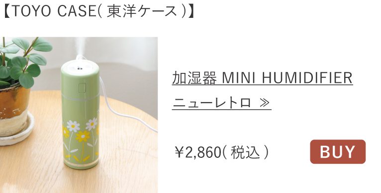 昭和レトロな花柄やすっきりとしたデザインでインテリアを邪魔しない卓上加湿器。どちらもコンパクトなので「乾燥は気になるけど場所はあまり取りたくない…」という方におすすめ。