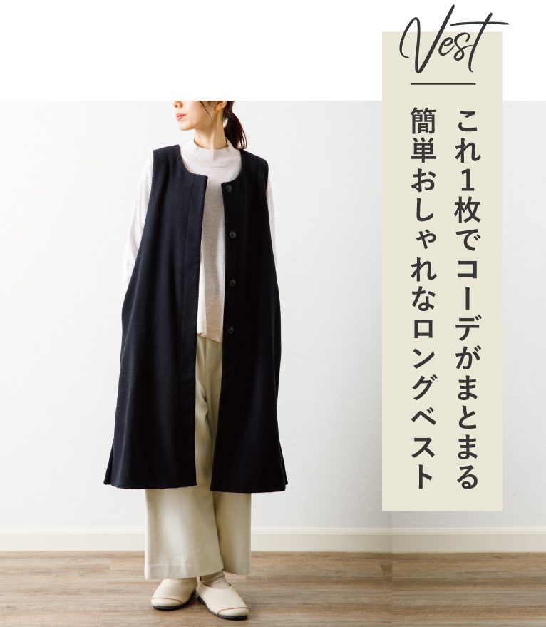 ■商品情報【HIYORI】ロングベスト ≫¥8,800(税込)
