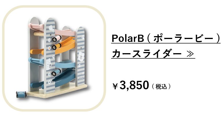 カラフルな滑り台と車4台がセットになっているカースライダー!車がだんだんと下にすべりおりていく様子に子供たちは夢中に♪