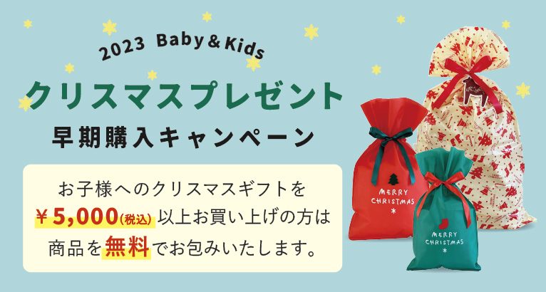 お子様へのクリスマスギフトを¥5,000(税込)以上お買い上げの方は商品を無料でラッピングいたします。
