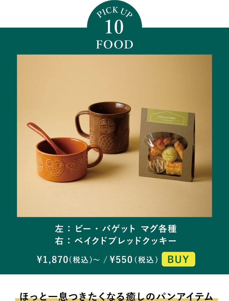パンをモチーフにした可愛いマグカップやクッキー。クッキーはクロワッサン、バケット、シナモンロール、メロンパン、デニッシュショコラの形の5種類入りで思わず手に取りたくなる可愛さ。プチギフトにもオススメです♪