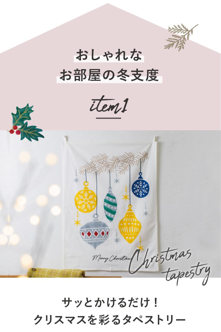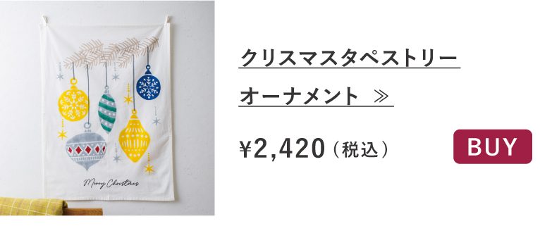 ブロックプリントという技法で1点1点職人さんが手作りで作っているアミングオリジナルタペストリー。使わない季節はコンパクトに収納ができるので賃貸など収納スペースでお悩みの方にもおすすめ!1枚飾るだけでお部屋のクリスマスムードがグッと上がります♪