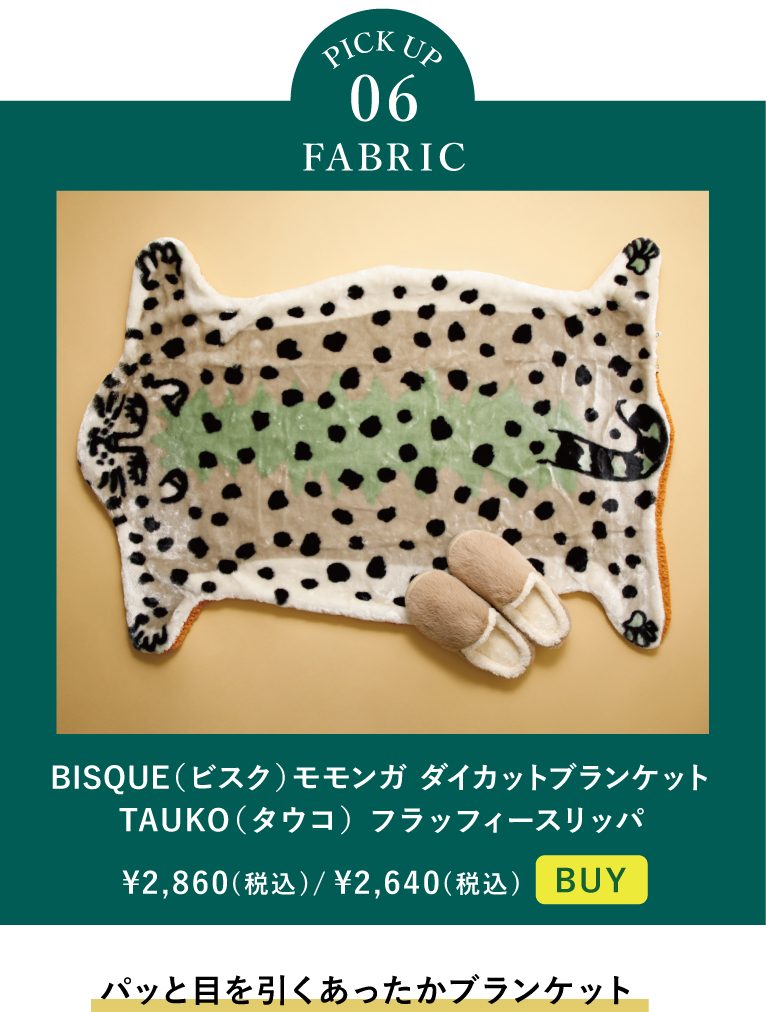 動物のダイカットが個性的なブランケットと素足ではいても気持ちいいスリッパ。シープボアやファーを使用しているので、あったかいだけでなく触り心地もGood◎おうち時間に大活躍間違いなしです。