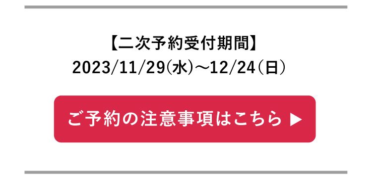 【二次予約販売期間】2023年11月29日(水)~12月24日(日)※実店舗は火曜日が定休日です※12月12日・19日・26日は営業いたします