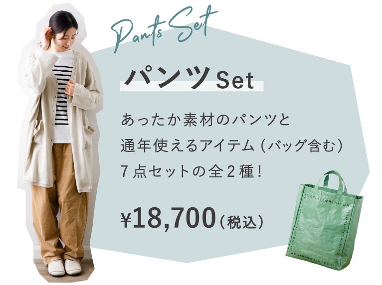 ※WEB予約の「店頭受け取り パンツセット1」「店頭受け取り スカートセット1」は完売しました。
