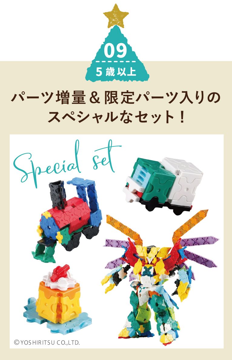 数量限定!「LaQ ボーナスセット2023」は、パーツ増量&限定カラーのクリアパーツ3色入りのお得なセット。なんと作れるモデル数は全部で100通り!QRコード読み取りでの作り方の説明や、説明書も入っているので飽きずにたっぷり遊べます。お子様の色彩感覚・想像力・表現力が身につきます♪