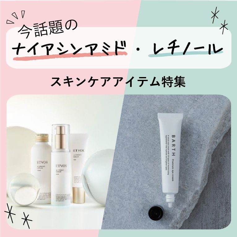 今回はナイアシンアミドやレチノールが入ったケアアイテムにどんなうれしい効果があるのかを解説&ご紹介します♪