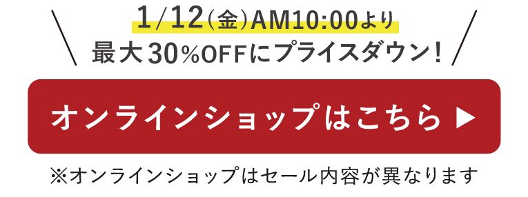 1/12(金)より、セール品が最大30%OFFにプライスダウン!!