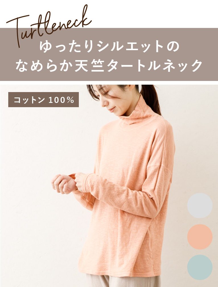 着丈が若干長めなので気になるおしり部分をカバーすることができ、袖丈が10分丈になっているので手首まであたたかく寒さ対策ができるのがポイント。衿ぐりも開きすぎず、詰まりすぎないちょうどいいところを目指しました。肩に縫い目がないのでより心地よく着られます。
