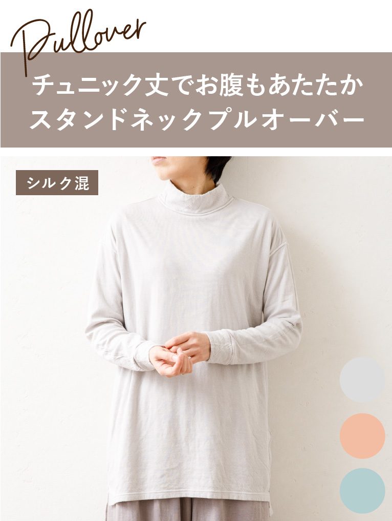 腰回りをあたたかく包みこむチュニック丈。背中の切り替え部分、袖口、衿の生地が2枚重ねであたたかく、袖口のリブも少し長めで手首が冷えにくくなっています。