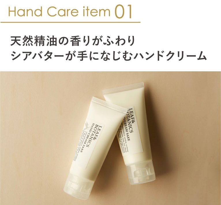 植物性の成分にこだわっているブランド『LEAF&BOTANICS(リーフアンドボタニクス)』のハンドクリーム。オリーブスクワラン・マカデミアナッツ油をベースに、肌によくなじんで潤いを守るシアバターを配合しています。天然精油を使用しており、自然な香りが日々のお手入れを楽しくしてくれます。