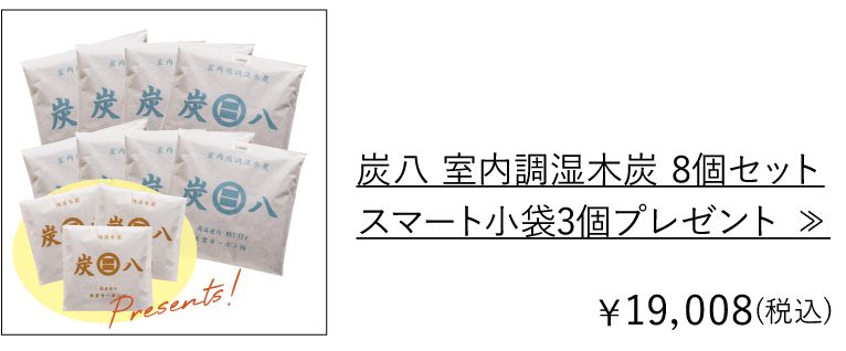 お部屋のジメジメに、嫌なニオイ対策に。暮らしの湿害を解決する「炭八」が再入荷しました!期間限定でお得なセットを送料無料でお届けします♪