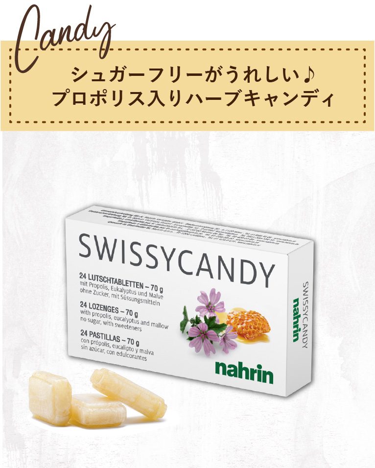 のど飴成分として定評のあるマロウを2種類(マーシュマロウ・コモンマロウ)を配合しさらに、ユーカリとプロポリスをプラスした贅沢なのど飴です。なめ終わった後のお口のさっぱり感は仕事の気分転換にもなるのでおすすめです。甘さや糖質が気になる方にシュガーフリーなのもうれしいポイント♪ハードタイプで少しずつ口の中でとけるので長持ちします。