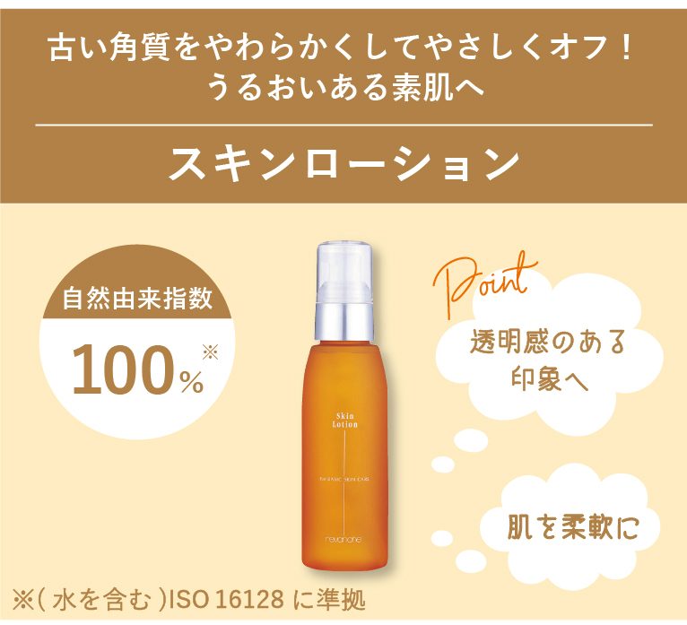 ルバンシュの「スキンローション」には、肌をやわらかくしてくれるグレープフルーツエキスや乳酸が配合されているので、使用する度に肌がうるおい、古い角質がはがれやすくなるよう導いてくれます。最新型ビタミンC誘導体(※)が肌をうるおし透明感のある印象の肌へと導きます。