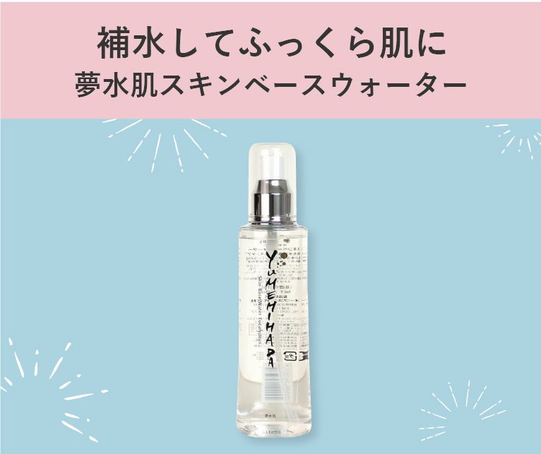補水におすすめなのは夢水肌の「スキンベースウォーター」。肌の状態に合わせて補水を意識して重ね付けするのがスキンベースウォーターの正しい使い方です。