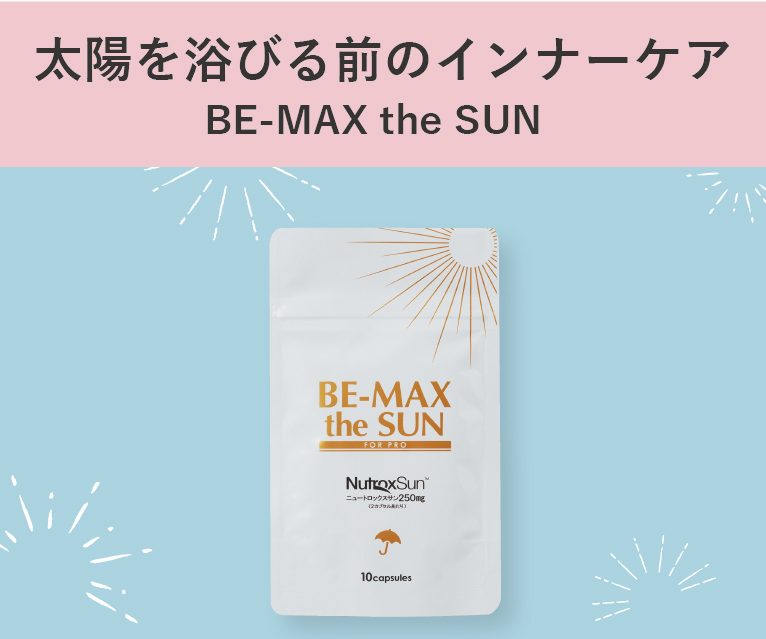そんなときは太陽を楽しむ!と決めて「BE-MAX the SUN」を飲んでからお出かけするのがおすすめ!そして帰ってきたらビタミンC補給として「BE-MAX Liposome-C+」を飲むのが◎