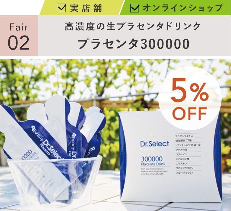 プラセンタエキスがたっぷり凝縮された美容ドリンク「Dr.Select プラセンタ300000」が5%OFF!