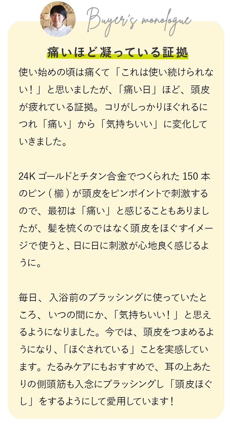 このヘアブラシとオイルさえあれば、頭皮ほぐしも毎日、気負わず続けられるようになりました。むしろ、毎日続けたくなります。