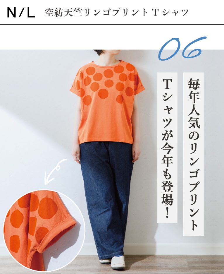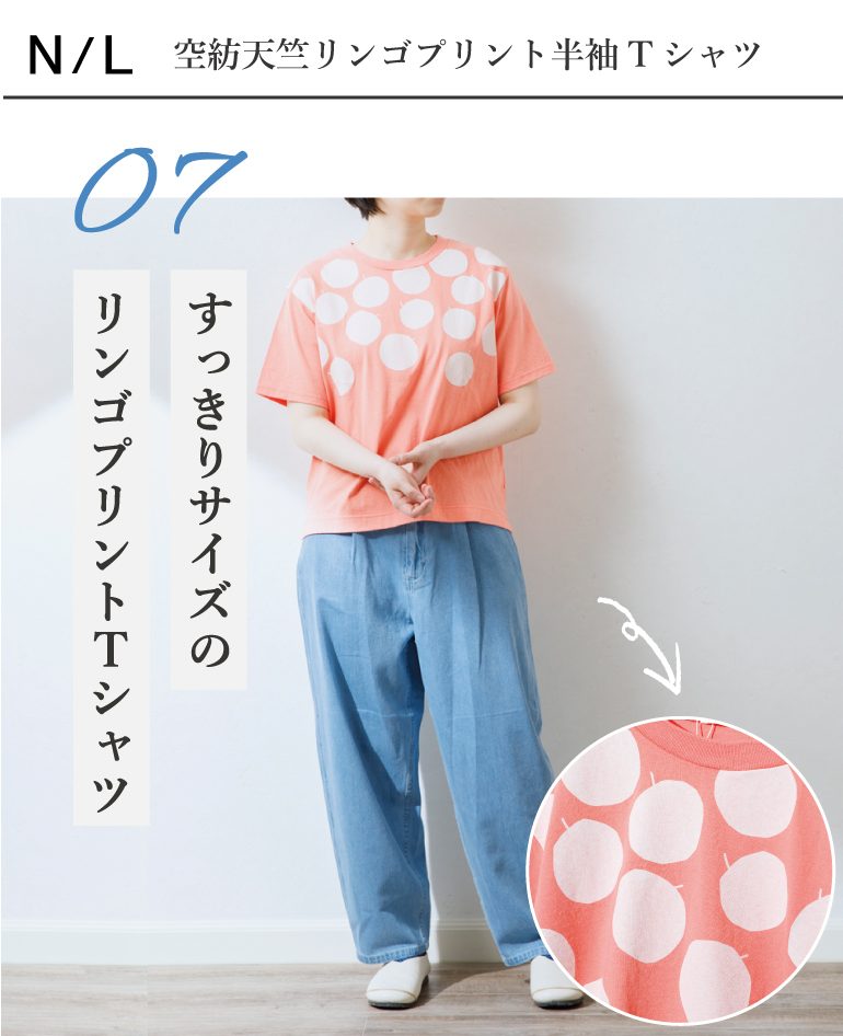 NATURAL LAUNDRY(ナチュラルランドリー) 空紡天竺 リンゴプリントTシャツ ≫¥6,930(税込)