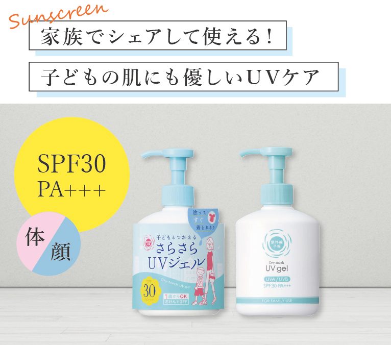 ポンプタイプのたっぷりサイズで、家族みんなで毎日のUVケア習慣を気軽に取り入れられます♪サッとなじむジェルクリームは、サラサラの使い心地でお子様や男性にもファンが多い人気の高い日焼け止めです。塗ってすぐに服が着られるほどサラサラだから、ベタつきが苦手な方におすすめ!