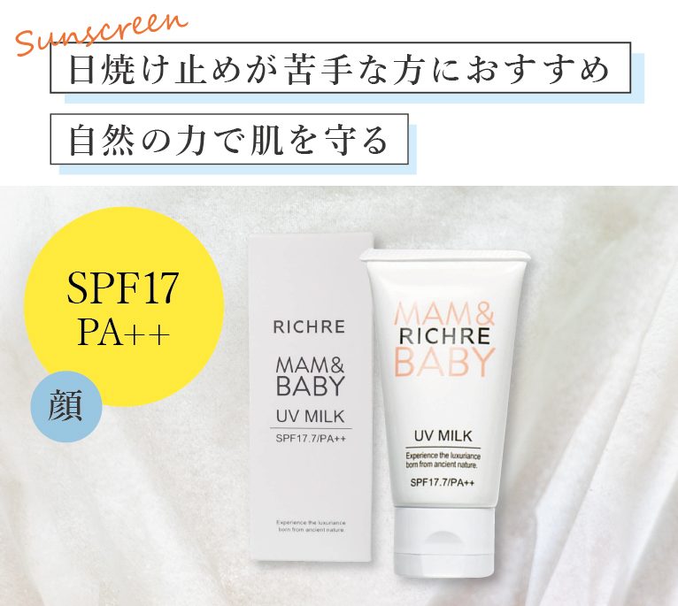 敏感肌の方のためにつくられたUVミルク。藻類由来の独自の成分「MAAs(マース)」(※)のみで紫外線をカットし、合成の紫外線吸収剤・散乱剤不使用で紫外線対策ができる優れものです。
