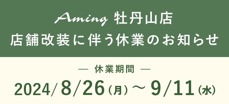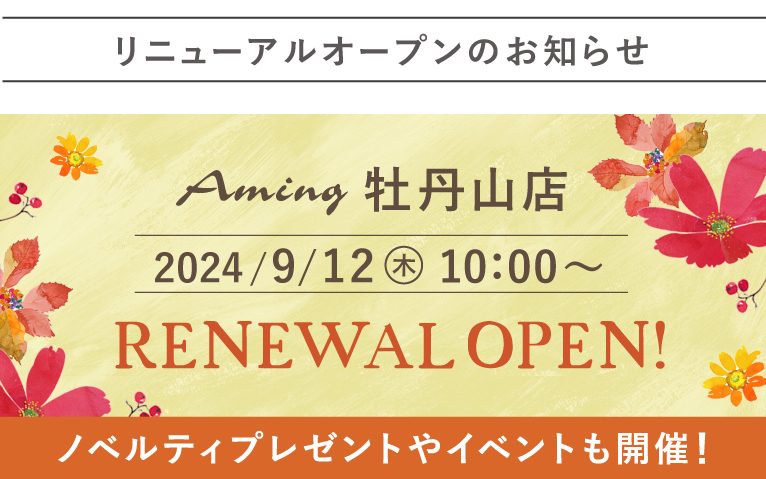 この度、アミング牡丹山店は店舗を改装し、9/12(木)にリニューアルオープンをさせていただくことになりました。