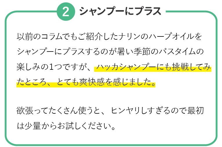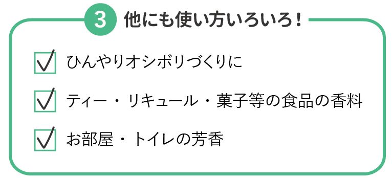 ハッカ油の使い方をまとめた本が何冊も出版されるほど、様々な使い方ができるハッカ油ですが、私のお気に入りの使い方をご紹介いたします♪