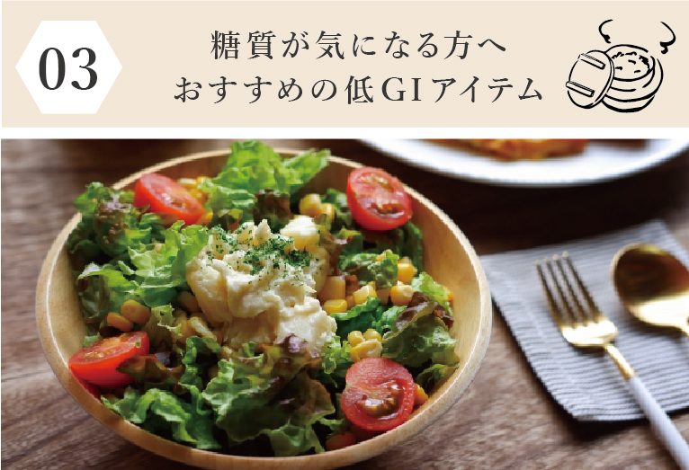 03糖質が気になる方へおすすめの低GIアイテム