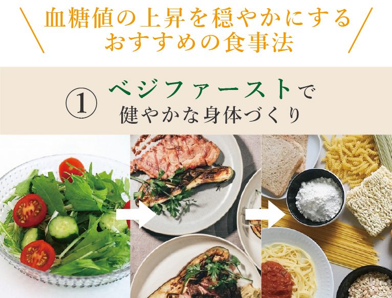 「べジファースト」はその名の通り、サラダなどの野菜から食べることを言います。血糖値の上昇を緩やかにする食事法として知られています。