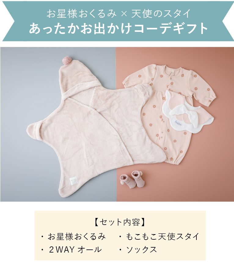 秋から使えて、本格的に寒くなる冬のお出かけにも大活躍!着ている姿がなんともカワイイ♡アミングで大人気の「お星様おくるみ」と、おうち時間に便利な「フリーススリーパー」をご紹介♪