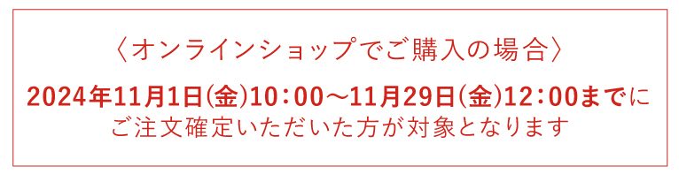 【オンラインショップ開催期間】2024年11月1日(金)10:00~11月29日(金)12:00までにご注文確定いただいた方が対象