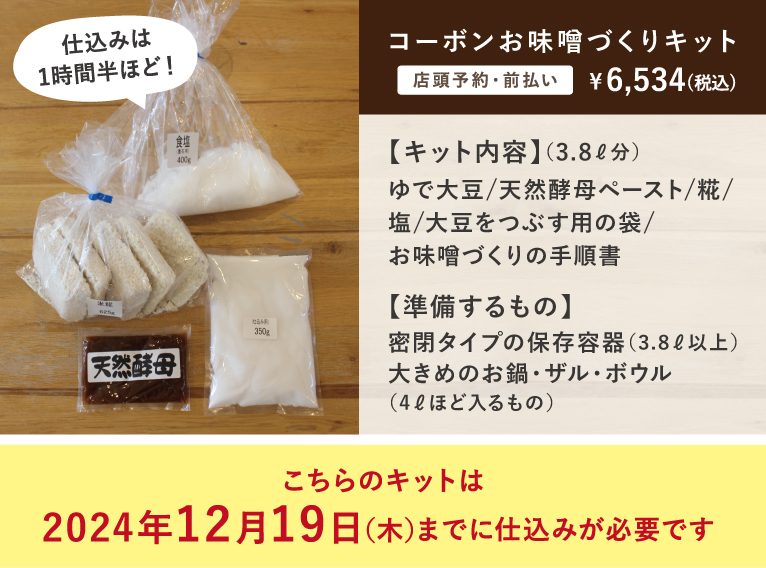 ※ご予約期間内であってもお味噌づくりキットがなくなり次第受け付けを終了いたします