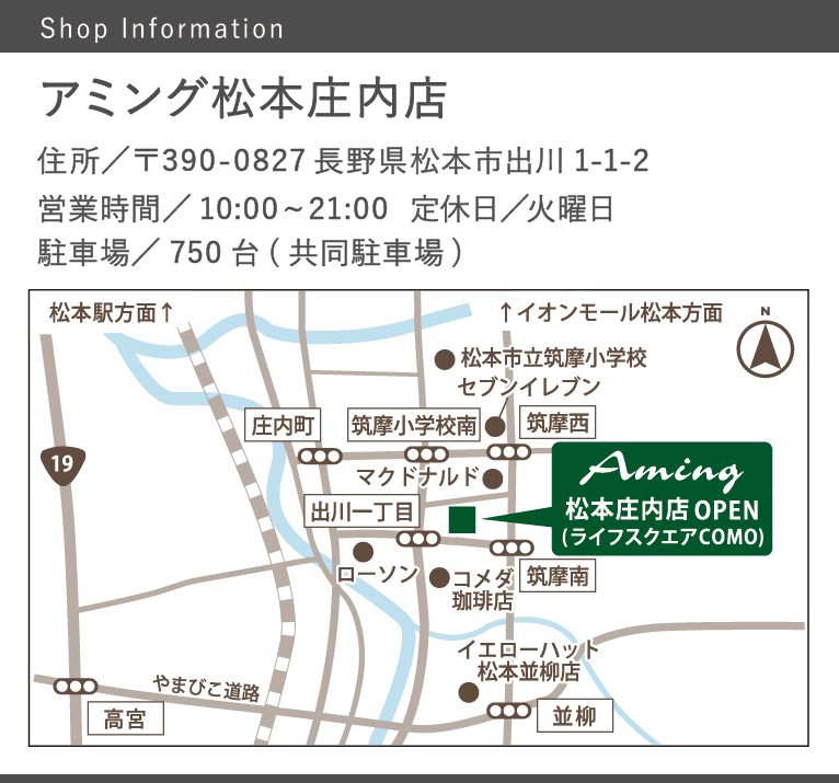 ぜひNEWオープンのアミング松本庄内店で心ときめく時間をお過ごしください。