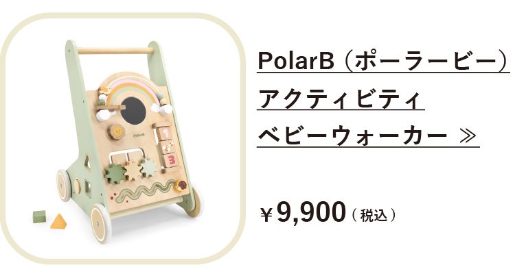 一人で歩きたいお子さまの強力サポーターに♪絵合わせ、型はめ、ビーズなどの指先遊びができるしかけやお子さまが夢中になるミラー付き!歩き始めの頃から長く楽しめます。後部の布にはお気に入りのおもちゃをのせられるので、カートとして遊ぶこともできます◎