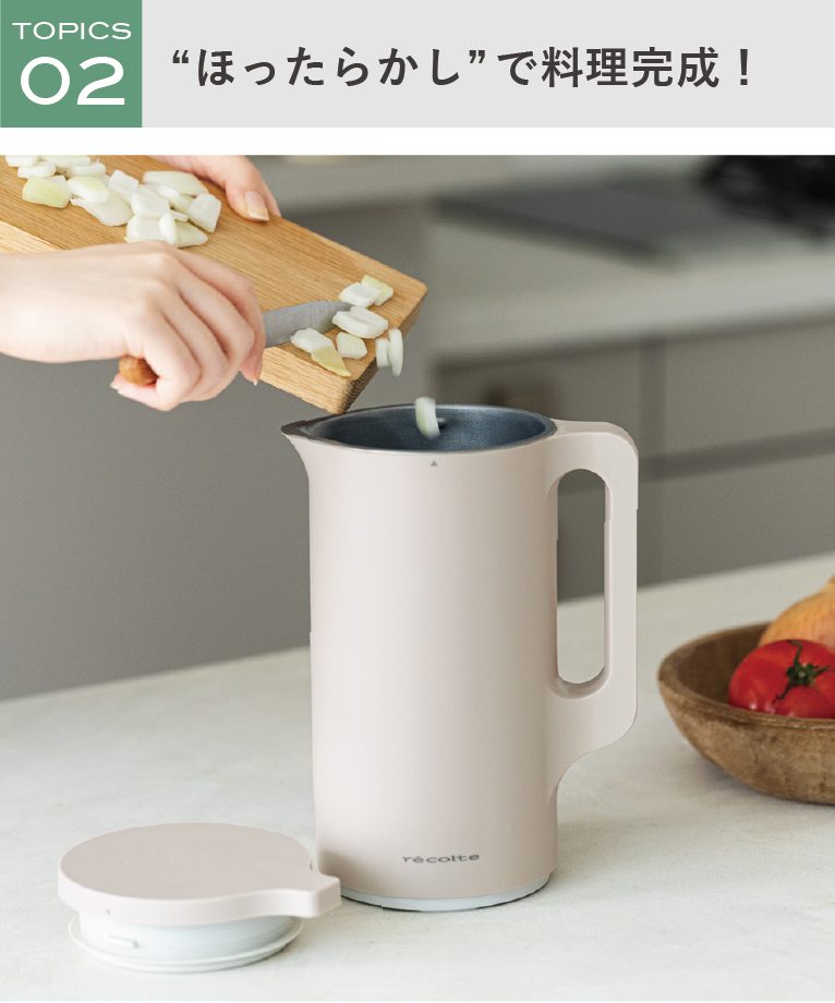スリムなポット型の「recolte(レコルト) 自動調理ポット」は、材料の刻み具合や加熱温度を、5種類の調理モードごとにコントロール。なめらかなポタージュや具材の形を残した食べるスープ、おかゆ、豆乳など、手間なく簡単につくれます。