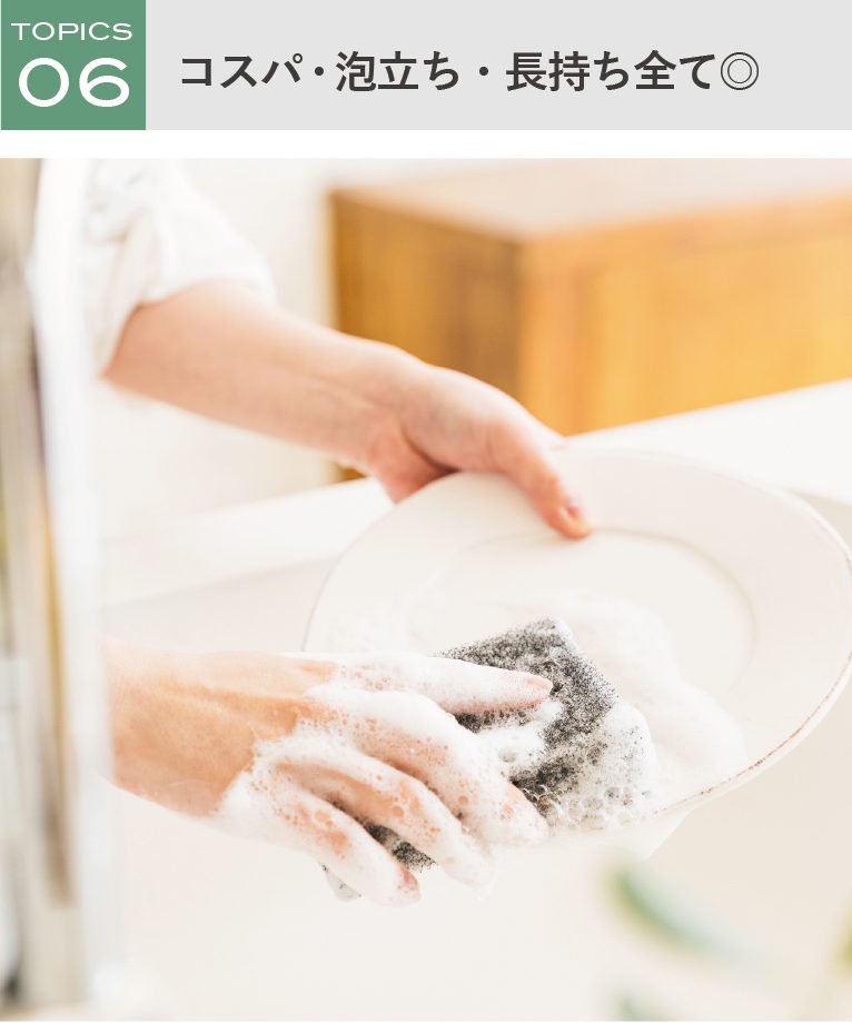 泡立ち、水切れ、長持ち◎