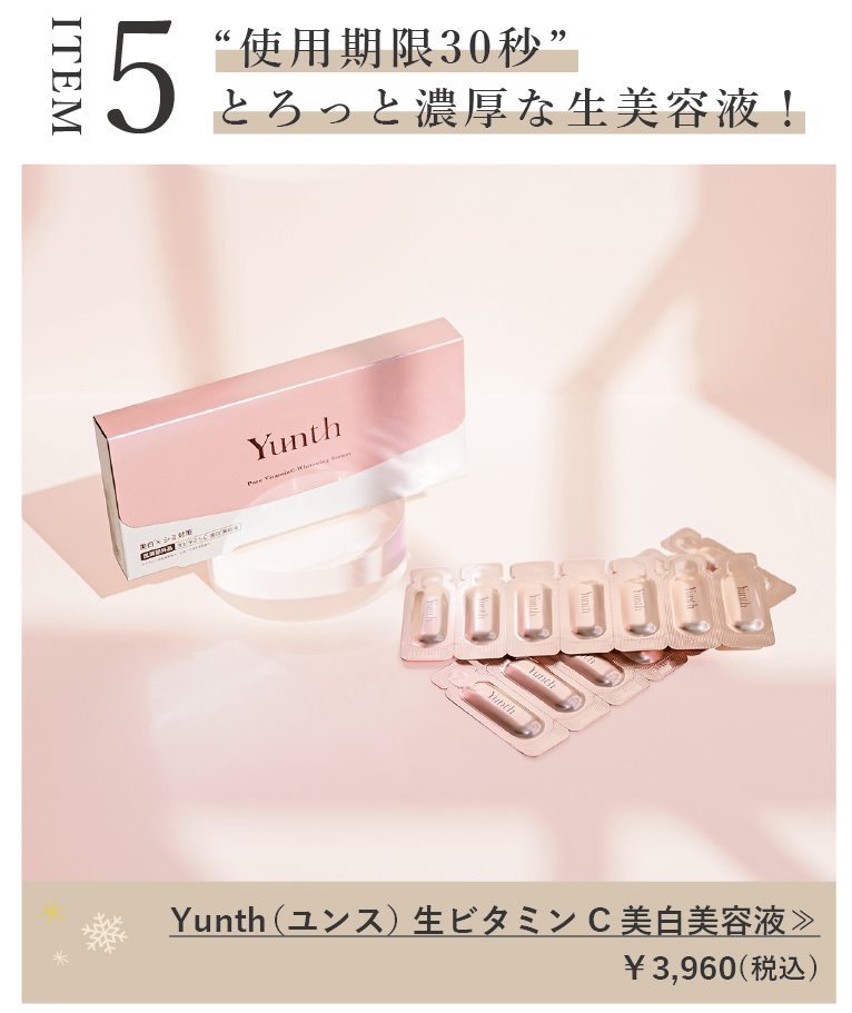 「Yunth生ビタミンC美白美容液」は、高濃度ビタミンCを配合しています。