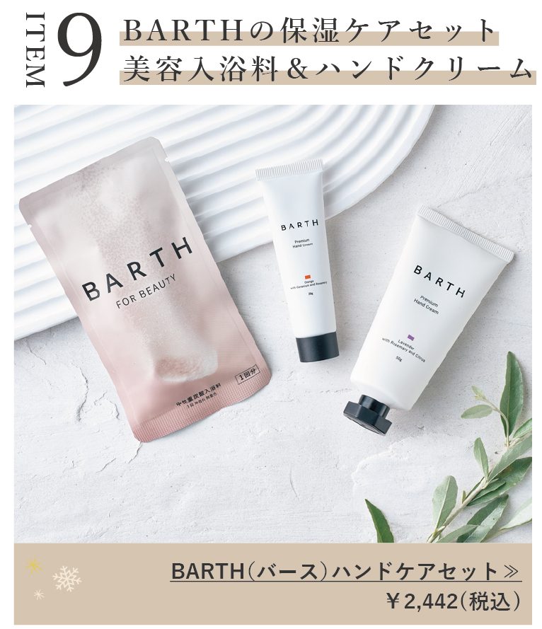 BARTHシリーズの中でも人気の「中性重炭酸入浴料beauty(1回分)」と「プレミアムハンドクリーム ラベンダー(50g)」「プレミアムハンドクリーム シトラス ミニサイズ(20g)」の魅力的なセット♪