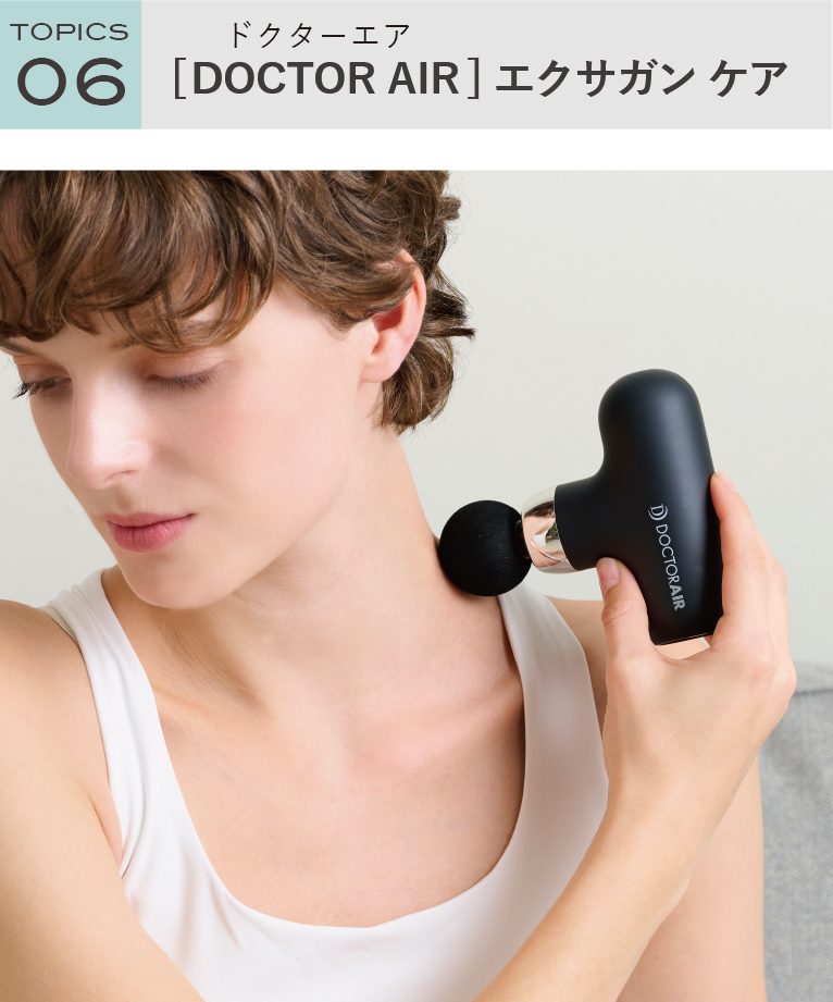 俳優の米倉涼子さんがブランドアンバサダーの「DOCTOR AIR(ドクターエア) エクサガン ケア」はバッグに収納しやすい大きさで持ち運びもしやすいボディケアアイテム。260gの軽量設計で最大約2,850回/分の振動と6mmのストロークで、パワフルに刺激!さまざまな形の4種類のアタッチメントの使い分けにより、部位に適したケアが可能です。定番のブラックに、落ち着きのあるピンクやホワイトなどペールトーンのカラーもキュート。