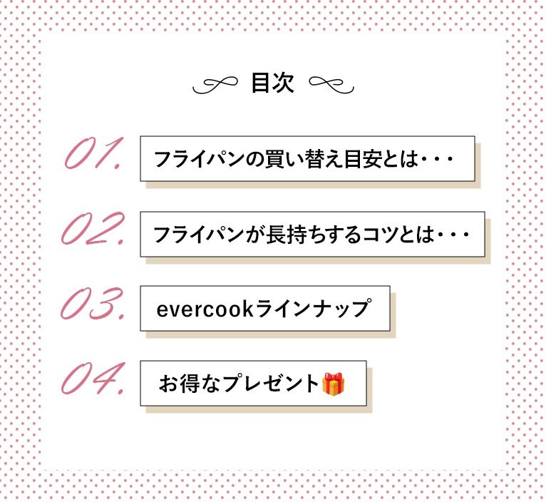 【新しいevercookに買い替えて、新年を迎えよう!】フライパンをいつ買い替えたらいいのか分からないという方も多いのではないでしょうか。今回は、フライパンの買い替えに関する4つのポイントと、長持ちするコツをご紹介します!