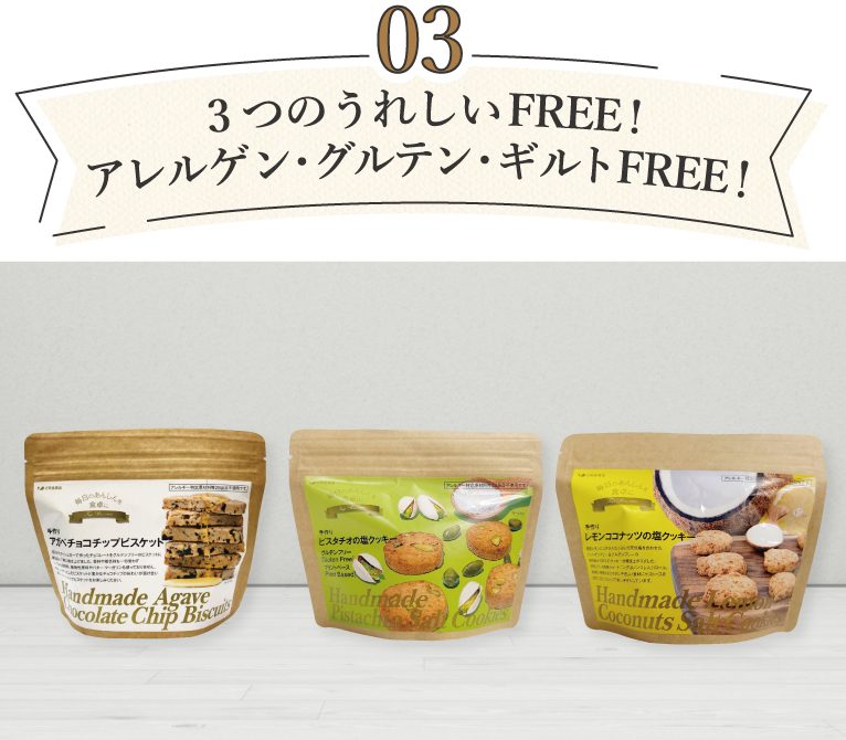 03 3つのうれしいFREE!アレルゲン・グルテン・ギルトFREE!