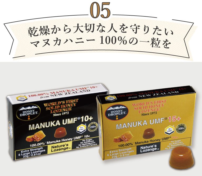05 乾燥から大切な人を守りたい マヌカハニー100%の一粒を