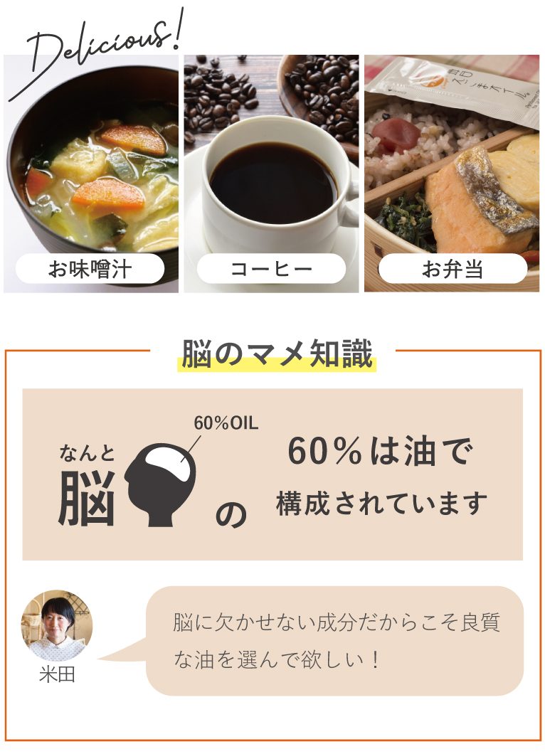 納豆やお味噌汁にそのまま『かける』だけ!クセがなく食べやすいため、素材の味を邪魔しないのがうれしいポイント。