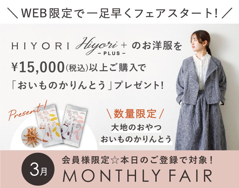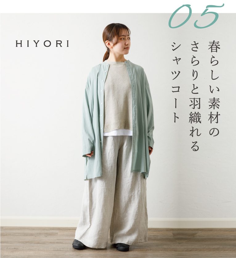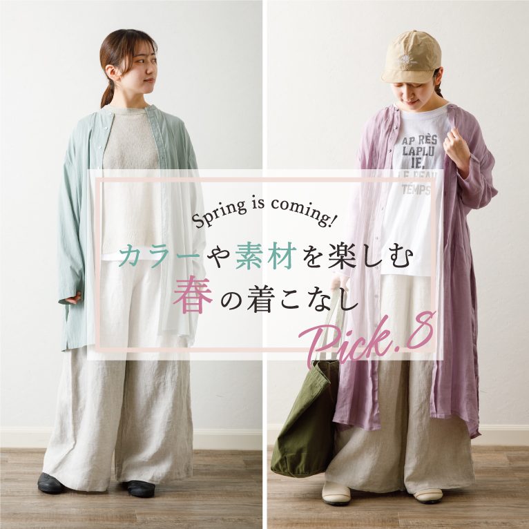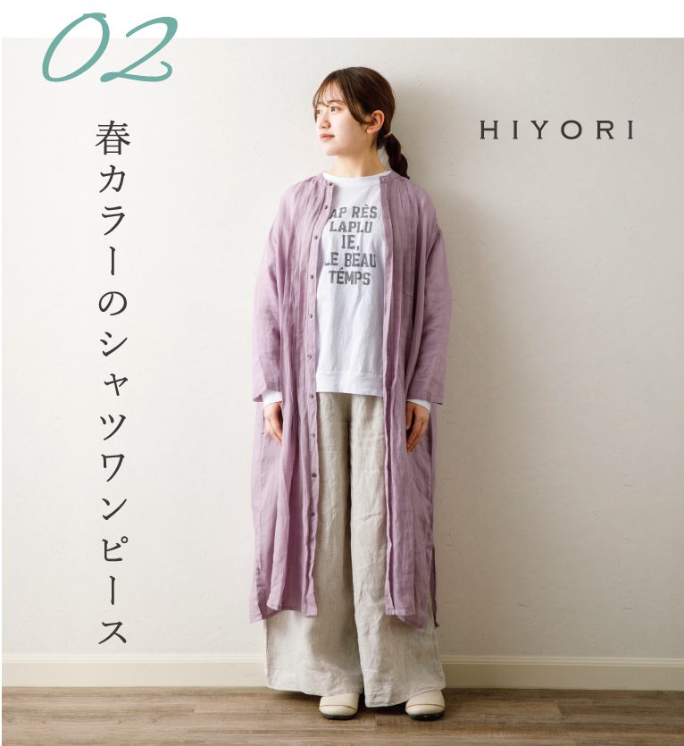 アミングオリジナルお洋服ブランドの『HIYORI(ひより)』『HIYORI+(ヒヨリプラス)』から、春のコーディネートをご紹介します!