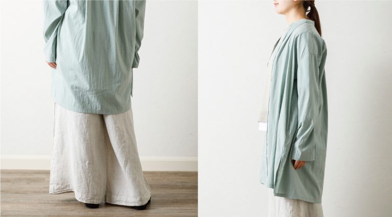 滑りの良い滑らかな風合いが特徴のシャツコート。 フィブリル加工による繊細なピーチタッチとリラックス感のある洗い感を併せ持ち、適度な透け感と繊細な綾目が上品な薄手素材です。