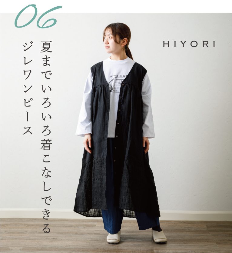 羽織るだけで今年らしさUP!&体系カバーにも◎な優秀アイテムのジレワンピース。春先はタートルネックと合わせたり、夏には半袖Tシャツにと、1枚羽織るだけでぐっとおしゃれ度がアップ!