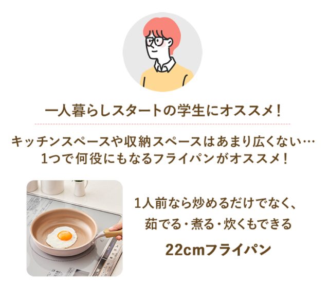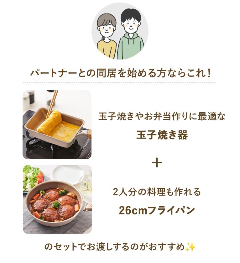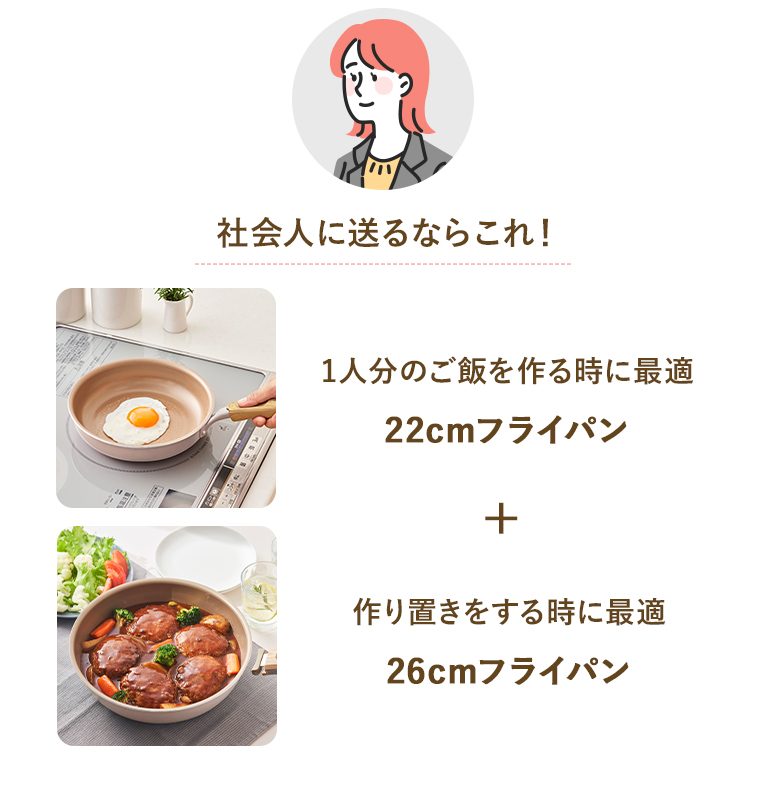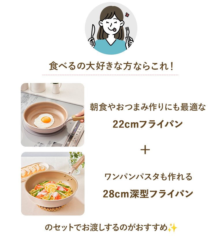 贈る相手のライフスタイルに合わせたプレゼント内容の一例をご紹介!プレゼントする相手のライフスタイルに合わせて、購入するフライパンサイズを考えてみてください!