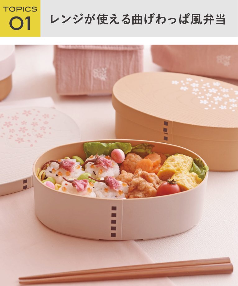 わっぱのお弁当を使ってみたいけどお手入れが…そんな方におすすめ!見た目はわっぱ風だけど樹脂製なのでお手入れがしやすく、レンジ・食洗機も使用できるお弁当箱です。
