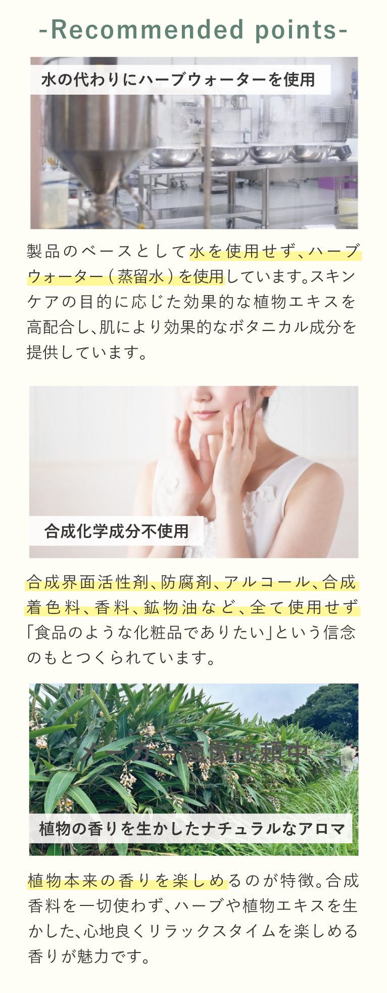 肌を優しく整え、爽やかで健やかな肌へ導きます。界面活性剤不使用・アルコール不使用で、敏感肌や乾燥肌の方におすすめです♪
